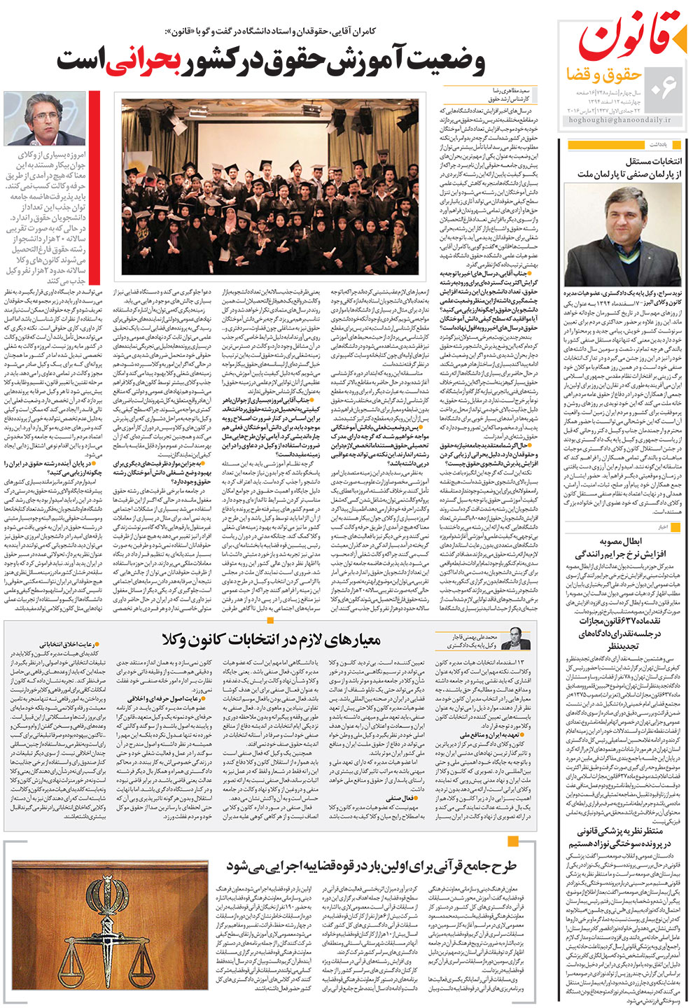 امروزه بسیاری از وکلای جوان بیکار هستند با این معنا که هیچ درآمدی از طریق حرفه وکالت کسب نمیکنند. باید پذیرفتها ضمه جامعه توان جذب این تعداد از دانشجویان حقوق را ندارد. در حالی که به صورت تقریبی سالانه ۲۰ هزار دانشجو از رشته حقوق فارغ التحصیل میشوند کانون وکلا سالانه حدود ۲ هزار نفر وکیل جذب میکنند.
