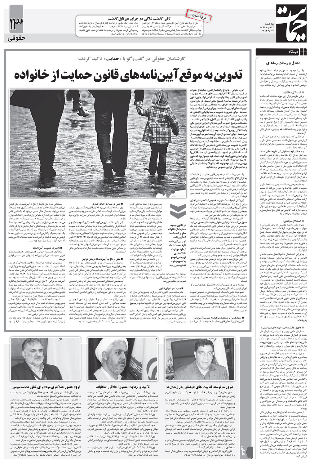 گروه حقوقی - با ابلاغ و انتشار قانون حمایت از خانواده در ابتدای سال ۱۳۹۲ فراز و نشیب‌های چندساله تدوین و تصویب این قانون به انتها رسید. اما آیا می‌توانیم این قانون را اجرایی شده بدانیم؟ پاسخ منفی است. در متن قانون حمایت از خانواده احرای مواد مختلفی موکوب به تصویب آیین‌نامه‌های اجرایی شده است و برای برهی از مواد نیز باید ضمانت اجرای کیفری به تصویب برسد، بنا بر این تا زمانی که این اسناد پشتیبان تهیه نشود باید قانون حمایت از خانواده را تنها روی کاغذ یک قانون کامل و لازم الاجرا داتست.